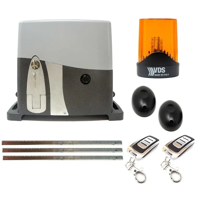 Incluye motor 800 kg, mandos, fotocélula y cremallera de acero, si prefieres cremallera de nylon, anotar en las observaciones del pedido.